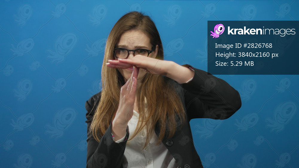 Young caucasian woman wearing glasses makes timeout gesture in blue studio setting; pause frustration.