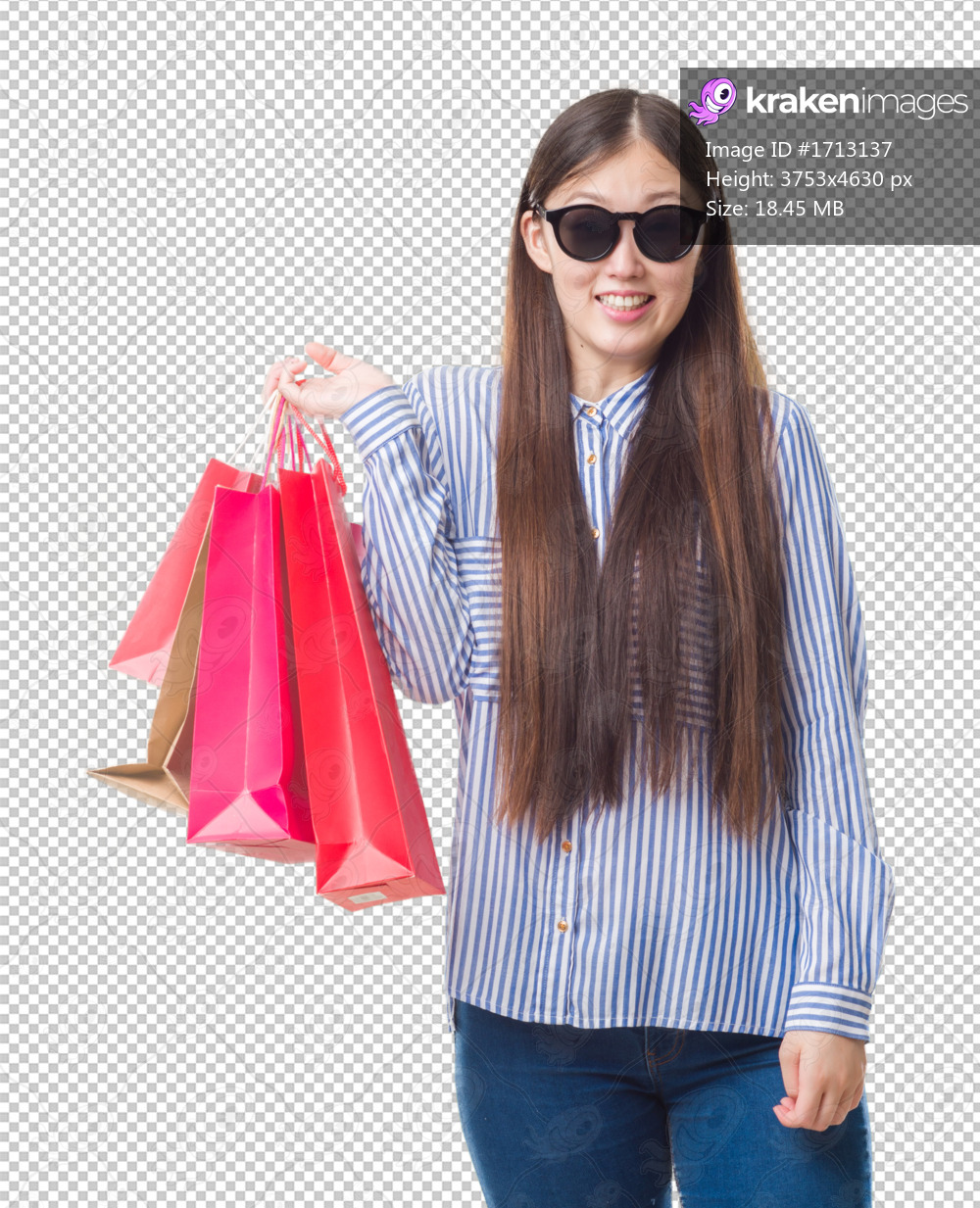 Young Chinese woman over isolated background holding shopping bags on sales with a happy face standing and smiling with a confident smile showing teeth - Kraken Images