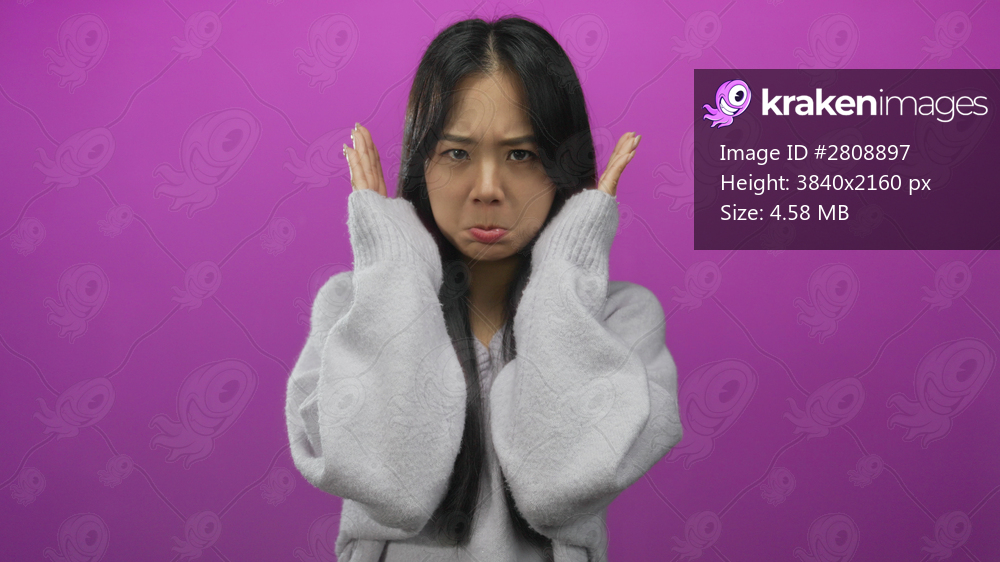 Young chinese woman playfully hiding face over isolated pink background, expressing happiness and fun, capturing a joyful moment with playful poses.