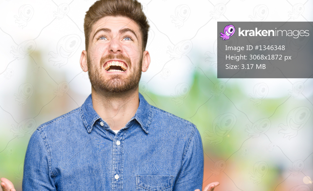 Young handsome blond man wearing casual denim shirt crazy and mad shouting and yelling with aggressive expression and arms raised. Frustration concept. - Kraken Images