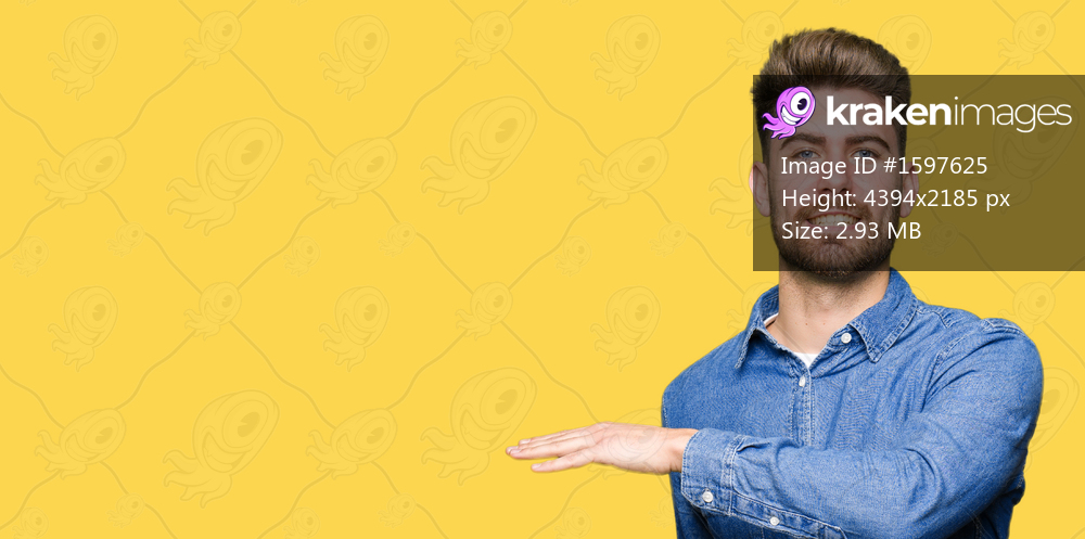Young handsome blond man wearing casual denim shirt gesturing with hands showing big and large size sign, measure symbol. Smiling looking at the camera. Measuring concept. - Kraken Images
