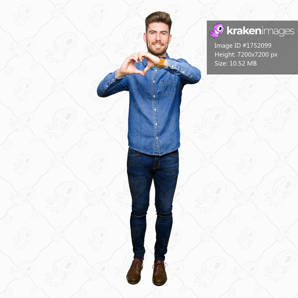 Young handsome blond man wearing casual denim shirt smiling in love showing heart symbol and shape with hands. Romantic concept.