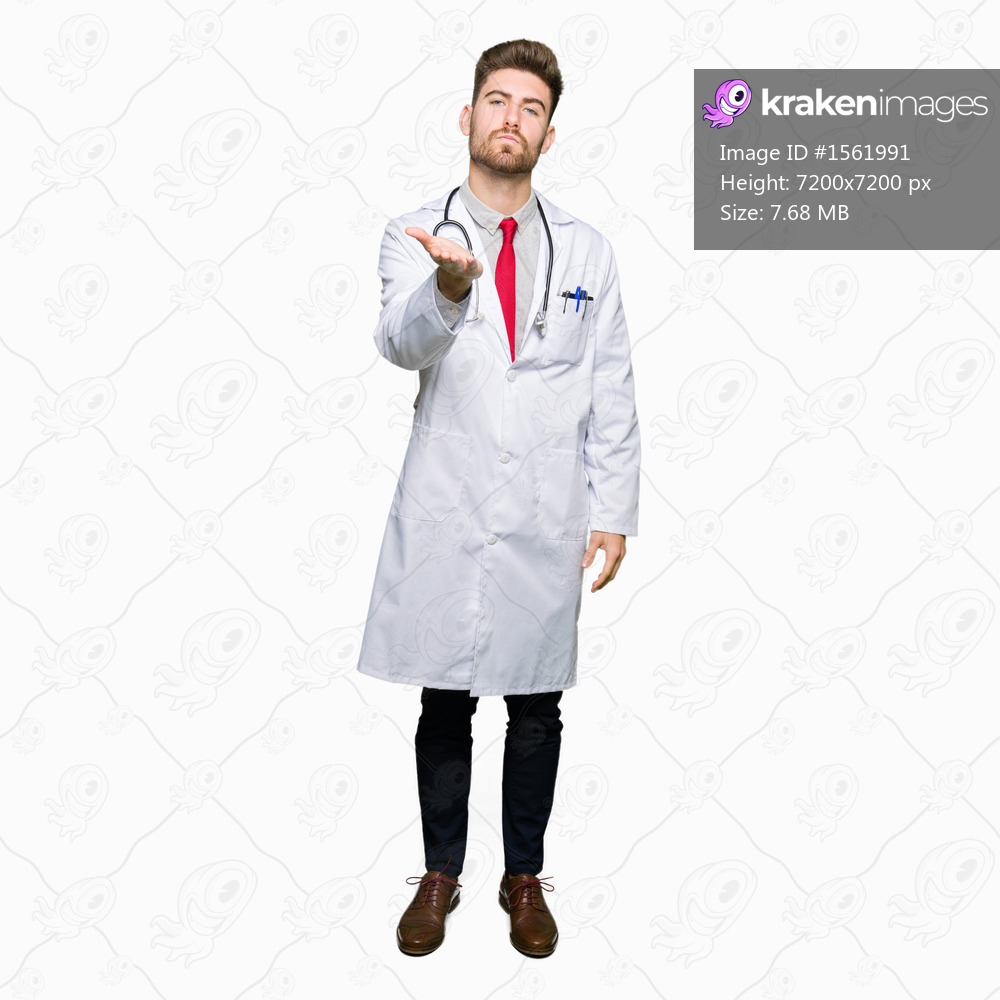 Young handsome doctor man wearing medical coat looking at the camera blowing a kiss with hand on air being lovely and sexy. Love expression.