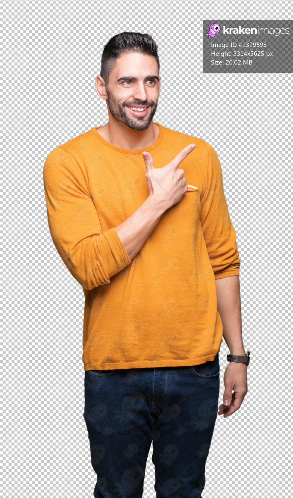 Young handsome man over isolated background cheerful with a smile of face pointing with hand and finger up to the side with happy and natural expression on face - Kraken Images