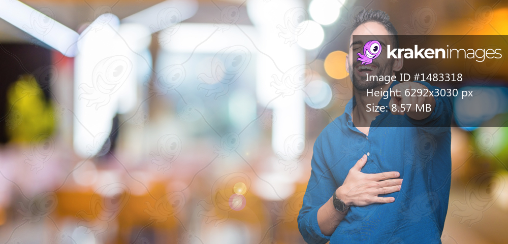 Young handsome man over isolated background Laughing of you, pointing to the camera with finger hand over chest, shame expression