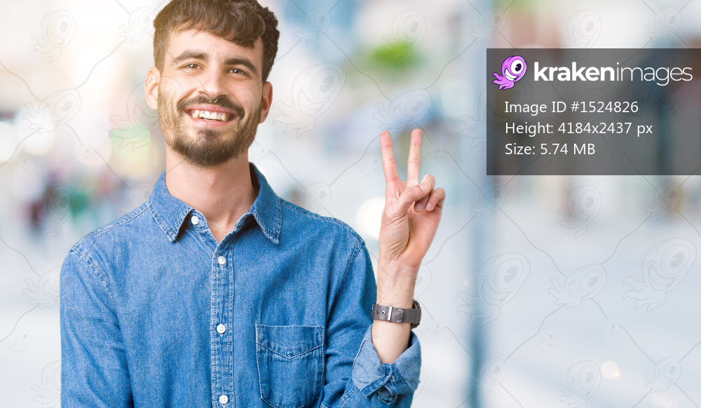 Young handsome man over isolated background smiling with happy face winking at the camera doing victory sign. Number two.