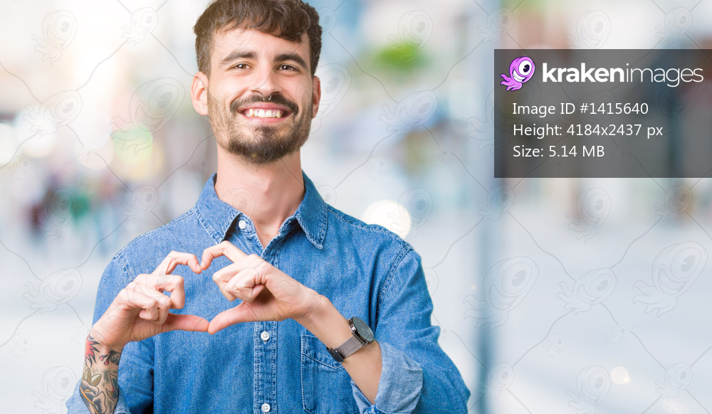 Young handsome man over isolated background smiling in love showing heart symbol and shape with hands. Romantic concept.