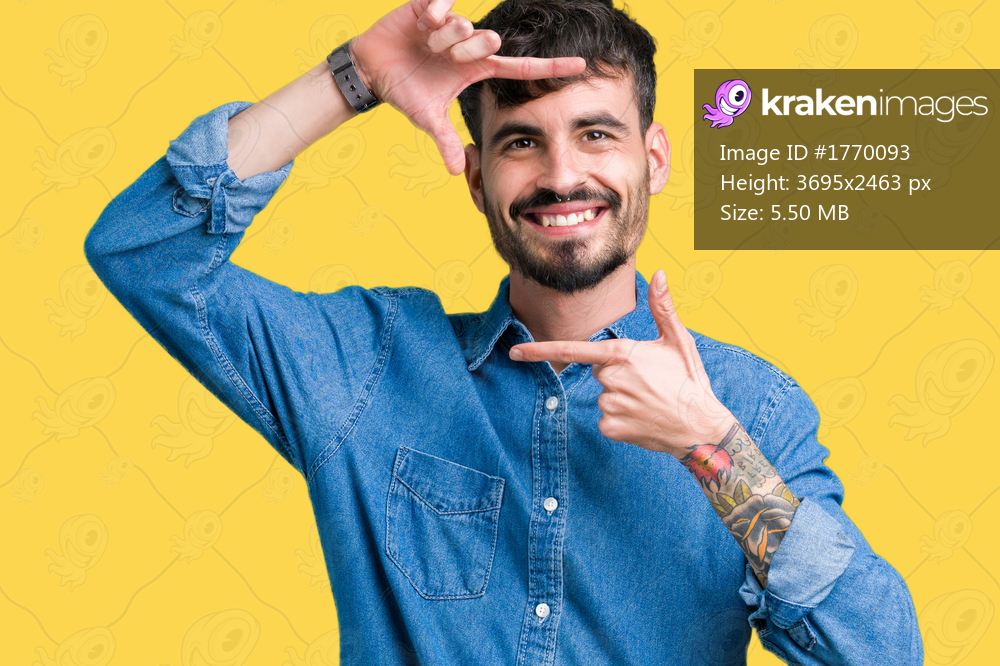 Young handsome man over isolated background smiling making frame with hands and fingers with happy face. Creativity and photography concept.