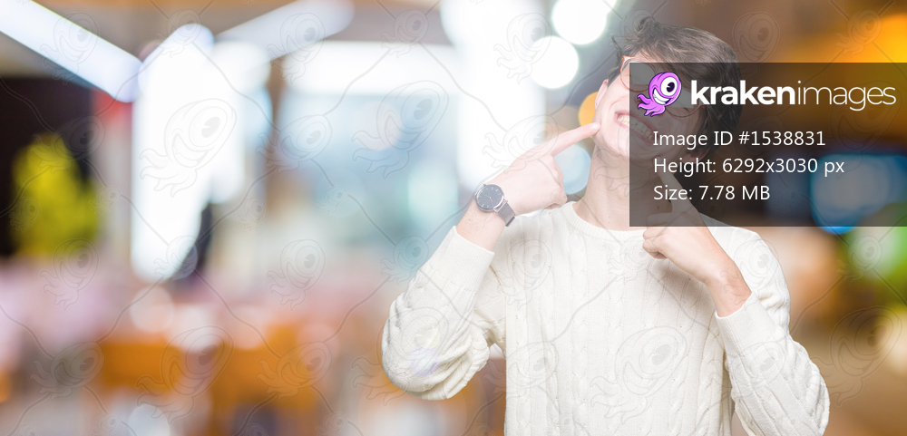 Young handsome man wearing glasses over isolated background smiling confident showing and pointing with fingers teeth and mouth. Health concept.
