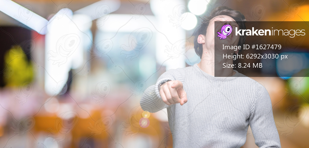 Young handsome man wearing winter sweater over isolated background Laughing of you, pointing to the camera with finger hand over chest, shame expression - Kraken Images