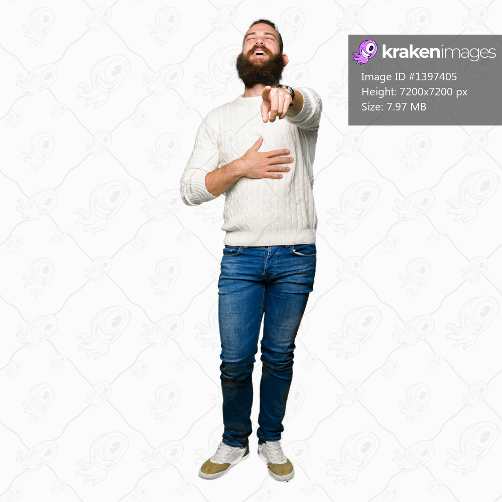Young hipster man wearing winter sweater Laughing of you, pointing to the camera with finger hand over chest, shame expression