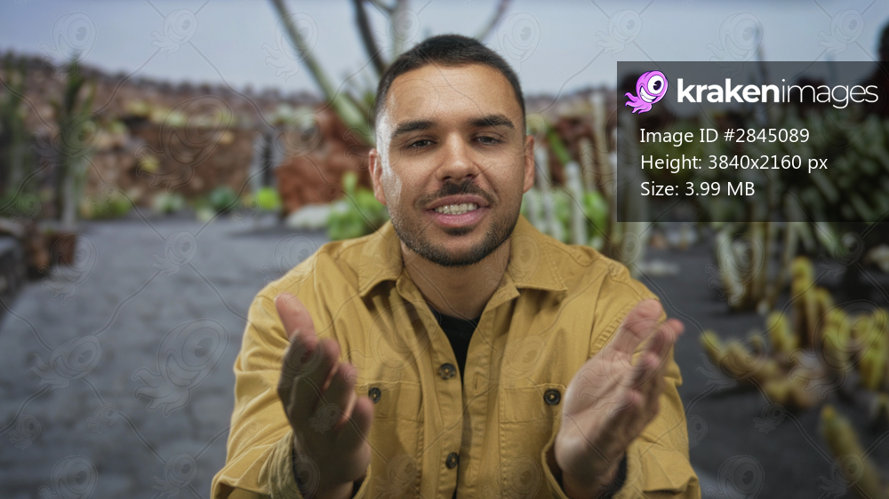 Young hispanic man blowing kiss with hands at lips and smiling in green park under sunlight; affection.