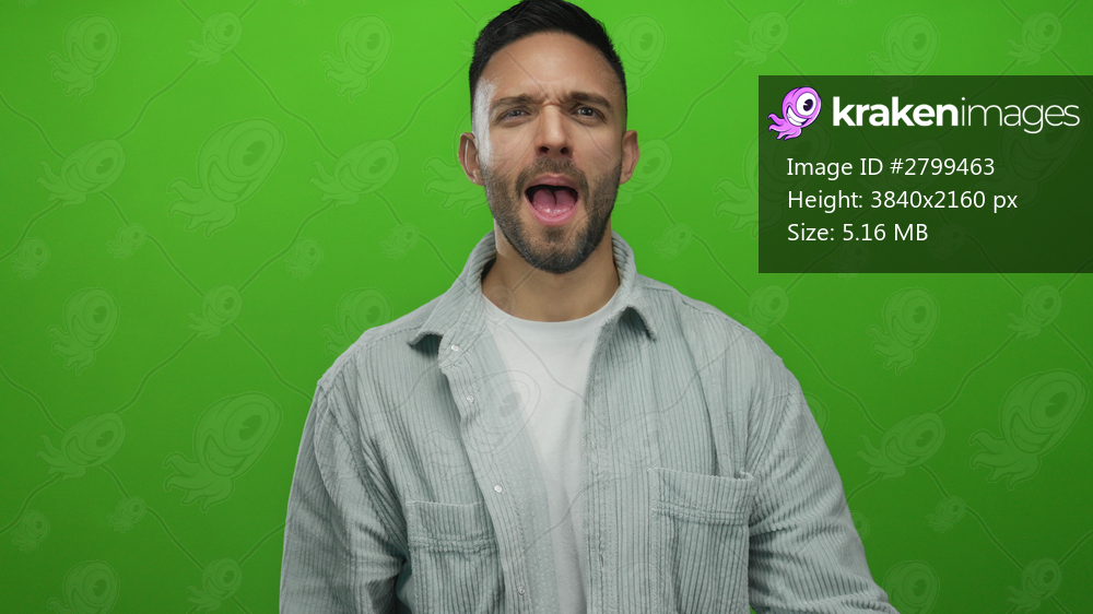 Young hispanic man expressing emotions with hand on chest against vibrant green background