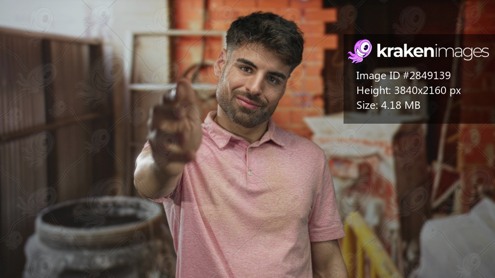 Young hispanic man extends right hand for handshake inside unfinished building at a construction site; trust.