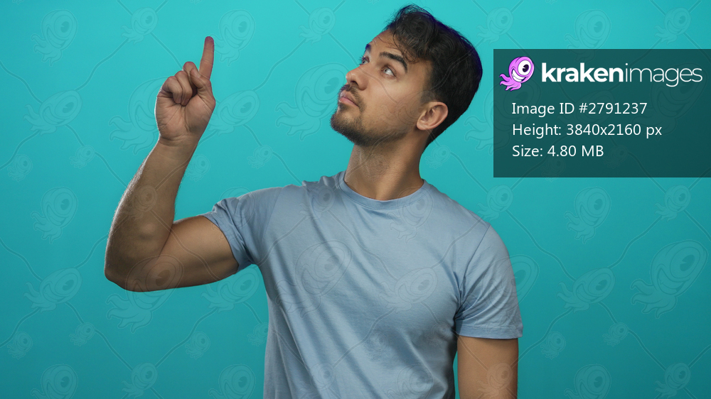 Young hispanic man gesturing on an isolated blue background, pointing upwards with a confident expression and giving a thumbs down, wearing a casual light blue shirt. - Kraken Images