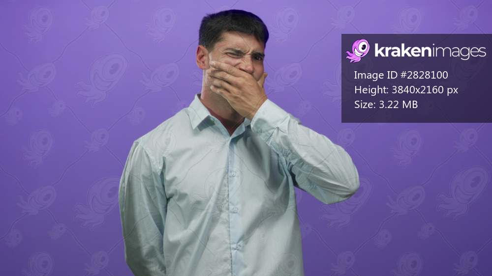Young hispanic man in light blue shirt holds cheek for toothache in studio; discomfort concern stress frustration.