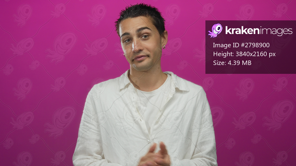 Young hispanic man in white shirt stands against vibrant pink background looking thoughtful and expressive reflecting a casual and isolated setting.