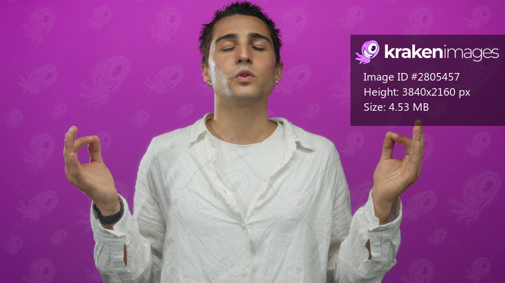 Young hispanic man meditating with closed eyes over isolated pink background expressing mindfulness and peace