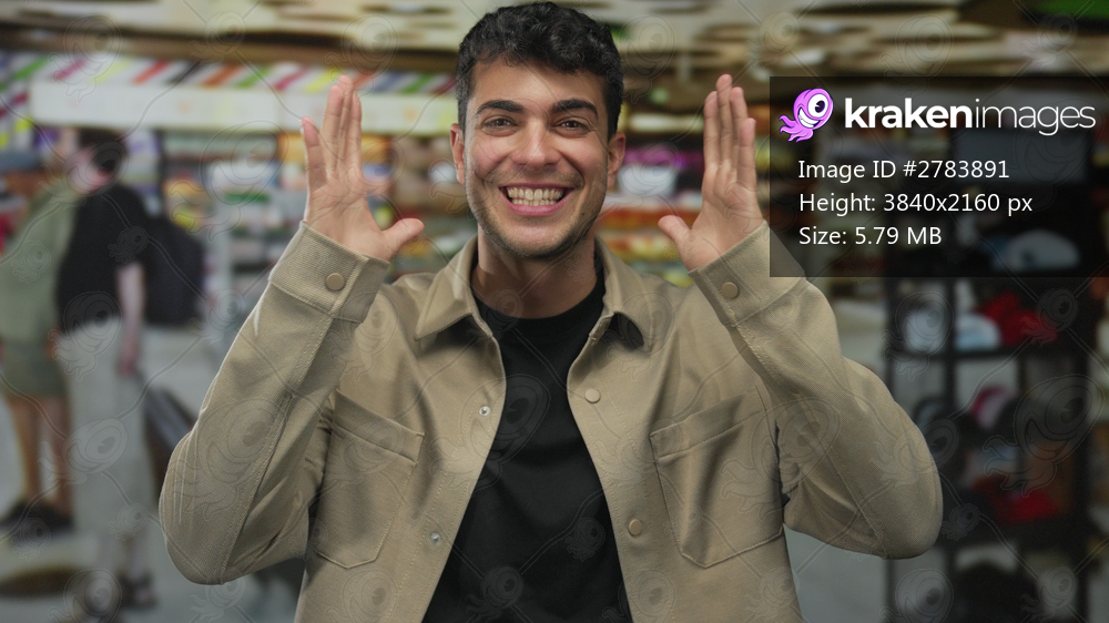 Young hispanic man rubbing eyes in supermarket; sleepiness fatigue.