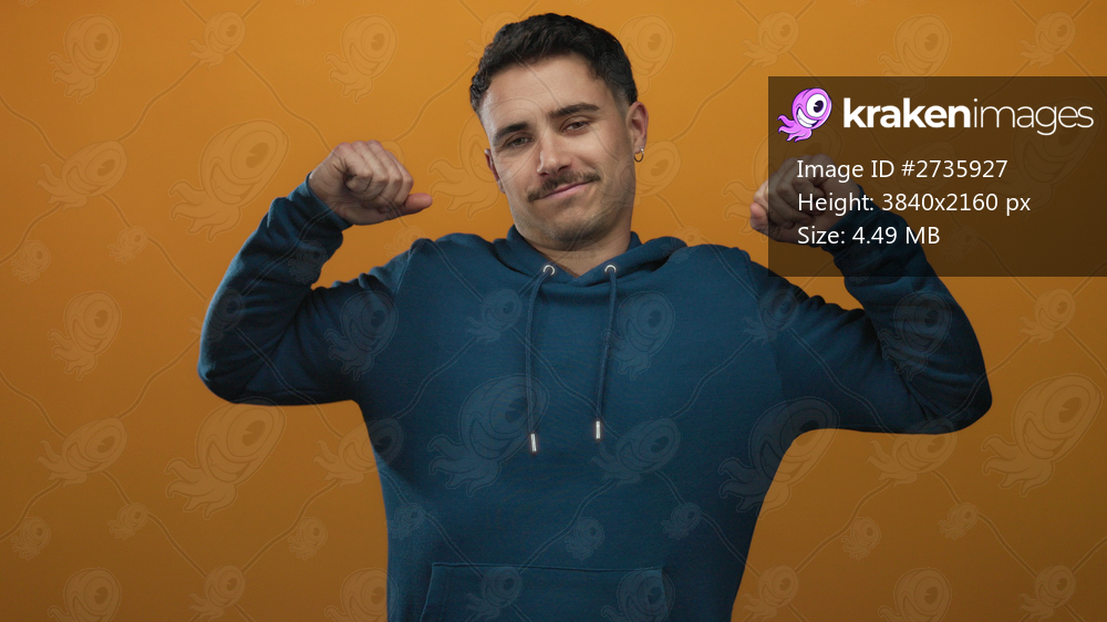 Young hispanic man stretching and making a sleeping gesture against an isolated orange background wearing a blue hoodie conveying relaxation and restfulness - Kraken Images