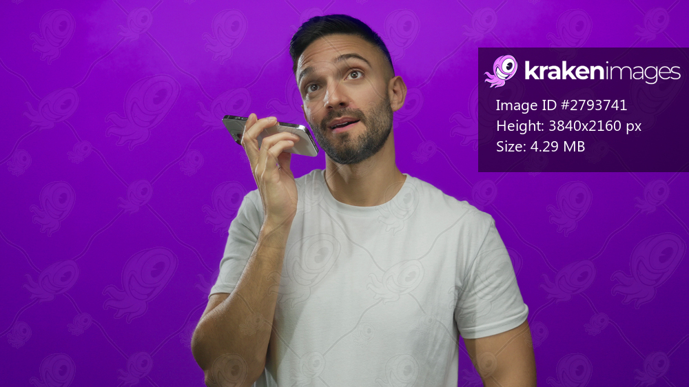 Young hispanic man talking on smartphone against vibrant purple background wearing casual white shirt.
