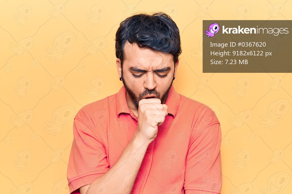 Young hispanic man wearing casual clothes feeling unwell and coughing as symptom for cold or bronchitis. health care concept.