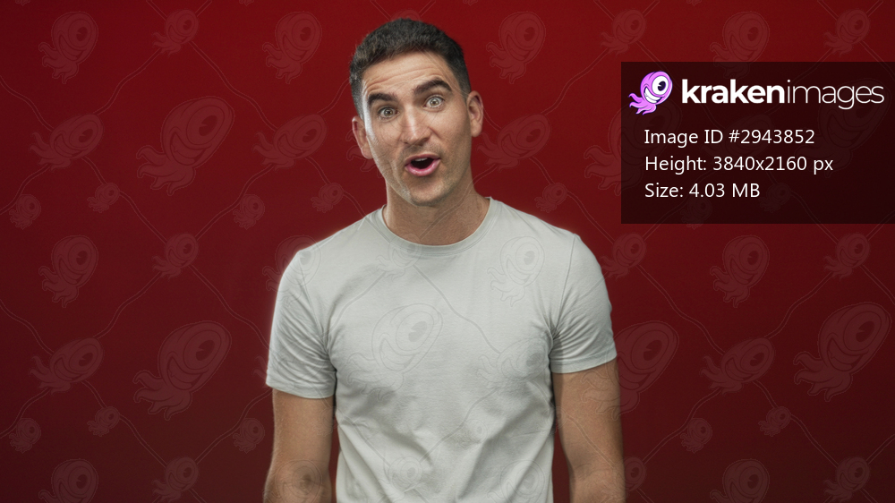 Young hispanic man wearing light gray t shirt with hands on chest smiling in red studio; gratitude warmth sincerity.
