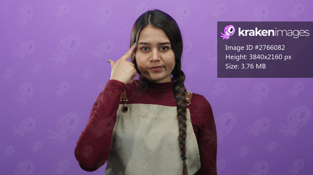 Young hispanic waitress wearing apron standing over isolated purple background with serious expression