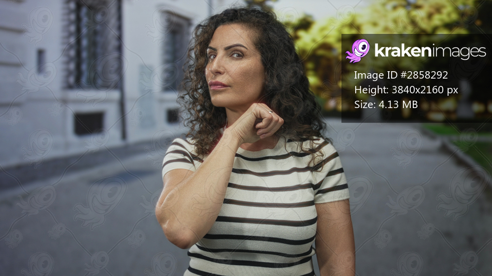 Young hispanic woman with bare hand makes throat slit gesture on busy city street in daylight; threat.