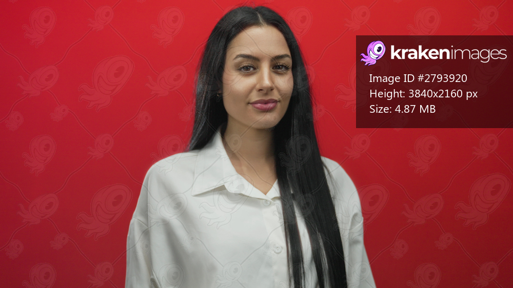 Young hispanic woman expresses surprise and confusion while gesturing against isolated vibrant red background wearing white shirt.