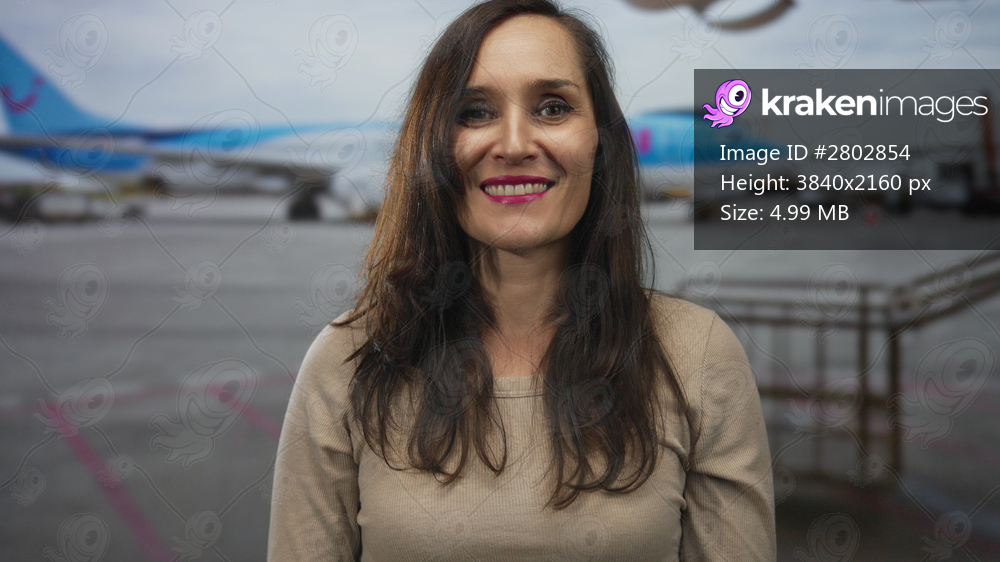 Young hispanic woman holds finger to lips for silence at airport terminal; silence secrecy quiet hush.