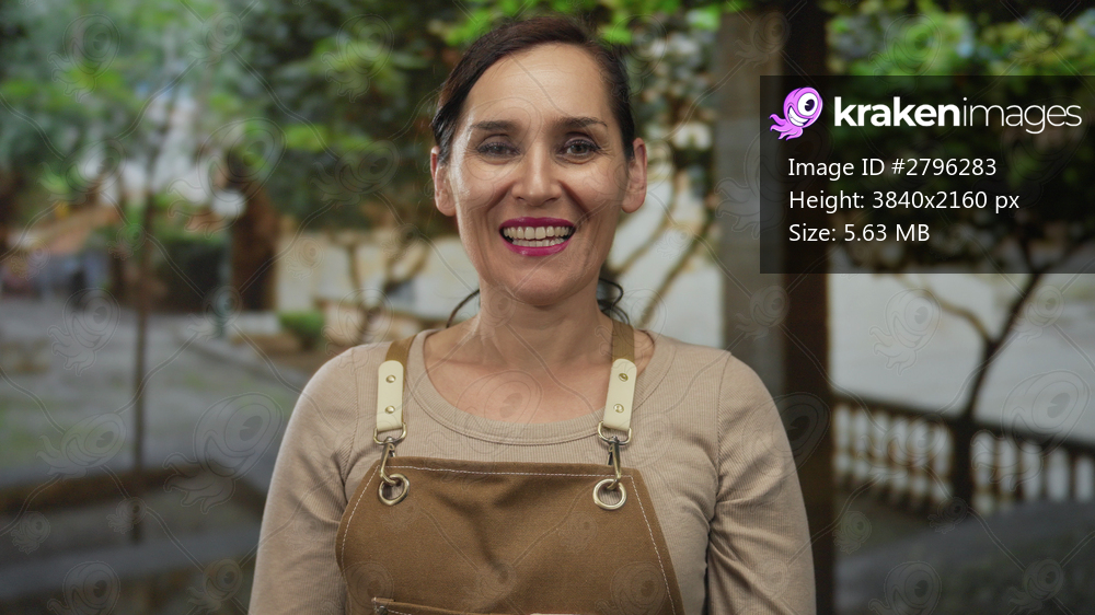 Young hispanic woman holds hands on cheeks in leafy urban park; astonishment surprise amazement wonder.