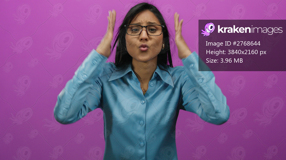 Young hispanic woman in stress holding her head in frustration against an isolated vibrant pink background, expressing overwhelmed emotions.