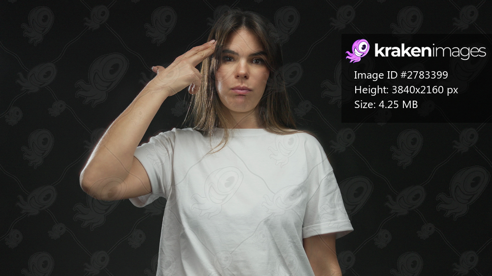 Young hispanic woman making gun gesture with fingers against isolated black background wall, expressing frustration or boredom with casual expression in white shirt. - Kraken Images