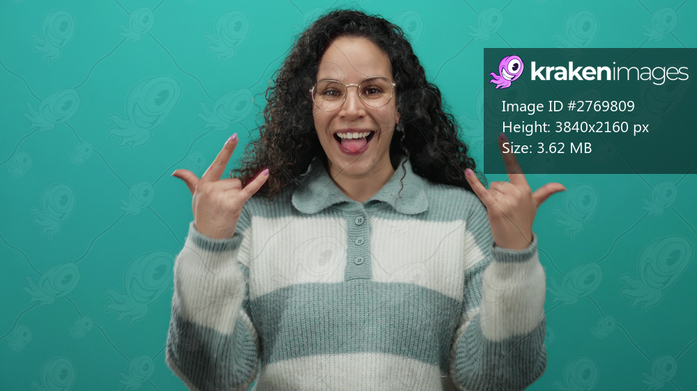 Young hispanic woman making rock gestures while sticking out tongue against green wall background in a playful manner.