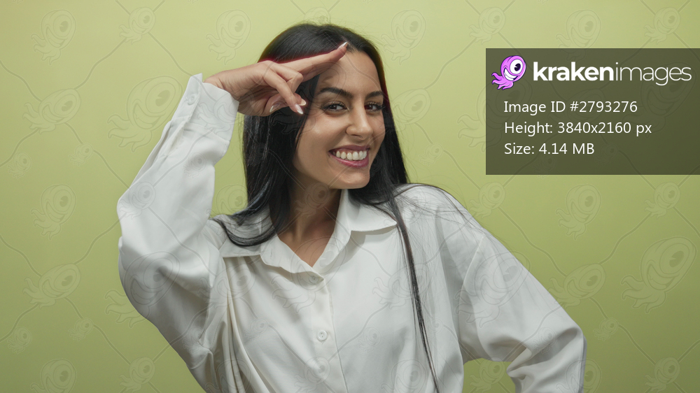 Young hispanic woman smiling with hand gesture on head against isolated yellow background wearing white shirt.