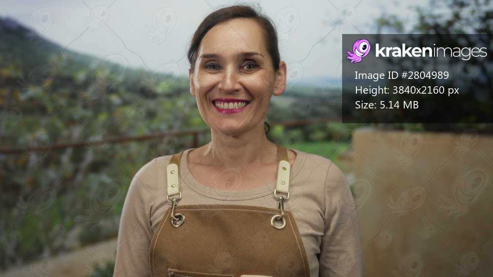 Young hispanic woman wearing a brown apron pouting her mouth in a green park; playful silly humor fun.