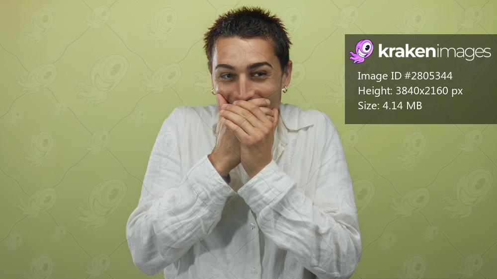 Young man covering mouth with hands over isolated yellow background wearing white shirt showing surprise and curiosity
