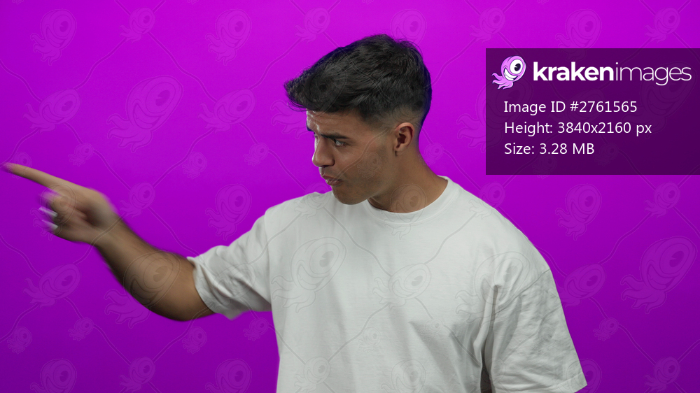 Young man in white shirt gesturing against vibrant pink background showing expressive emotions and attitude suggesting diversity and modern style