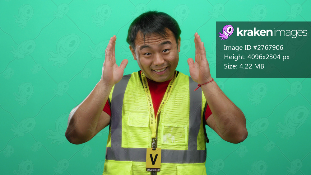 Young man in yellow vest gesturing hand sign over green background showing expression with cheerful smile
