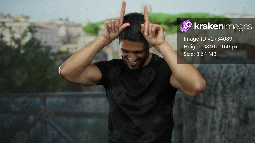 Young man playfully posing against the backdrop of ancient roman ruins in italy, highlighting his playful expression and muscular arms in an outdoor city street setting. - Kraken Images