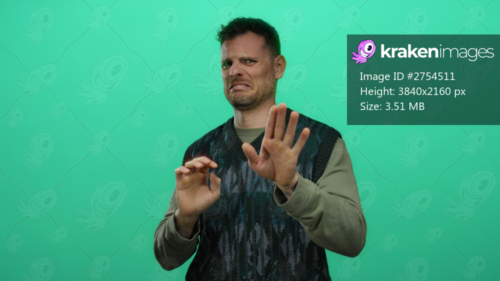 Young man reacting in disgust over isolated green background wall showing expressive emotion