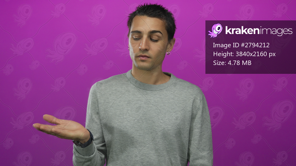 Young man with short hair in casual sweater over isolated pink wall with questioning expression, focusing on gesture and expression