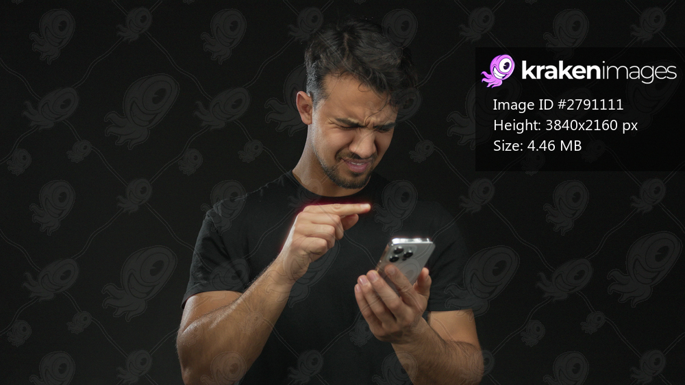 Young man with smartphone over isolated black background expressing various emotions including confusion frustration and triumph.