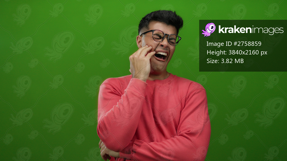 Young man wearing glasses yawning in front of a vibrant green background, showcasing casual expression and style