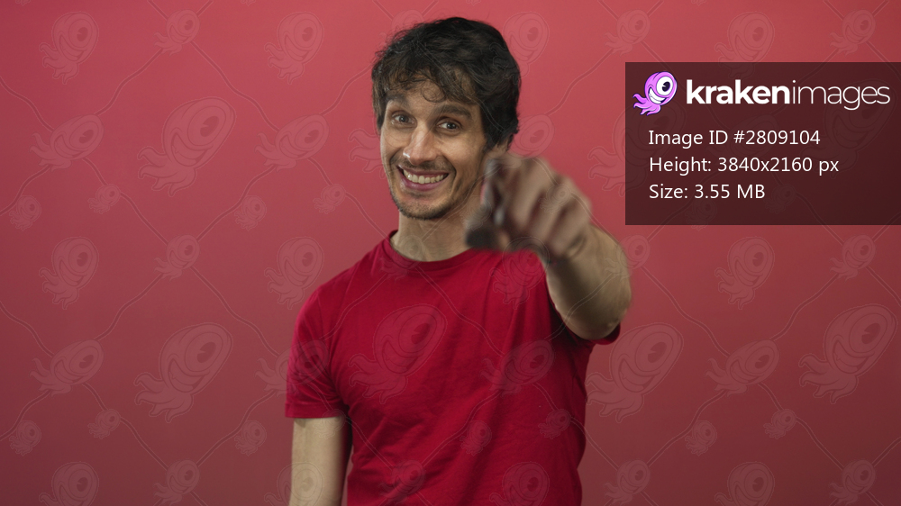 Young man wearing red shirt smiling and making heart gesture with hands in studio against red backdrop; love.