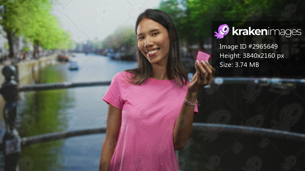 Young thai woman holding a pink menstrual cup in her hand on a studio bridge backdrop; period care confidence.
