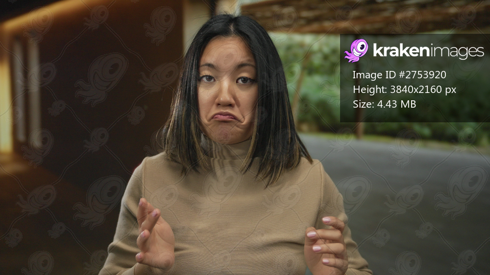 Young woman expressing indifference indoors in a relaxed room setting with natural light and neutral colors conveying a casual and thoughtful atmosphere. - Kraken Images