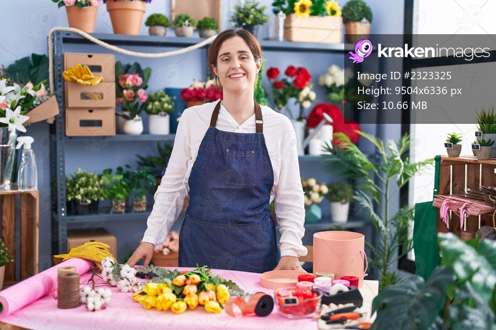 Young woman florist smiling confident standing at florist shop