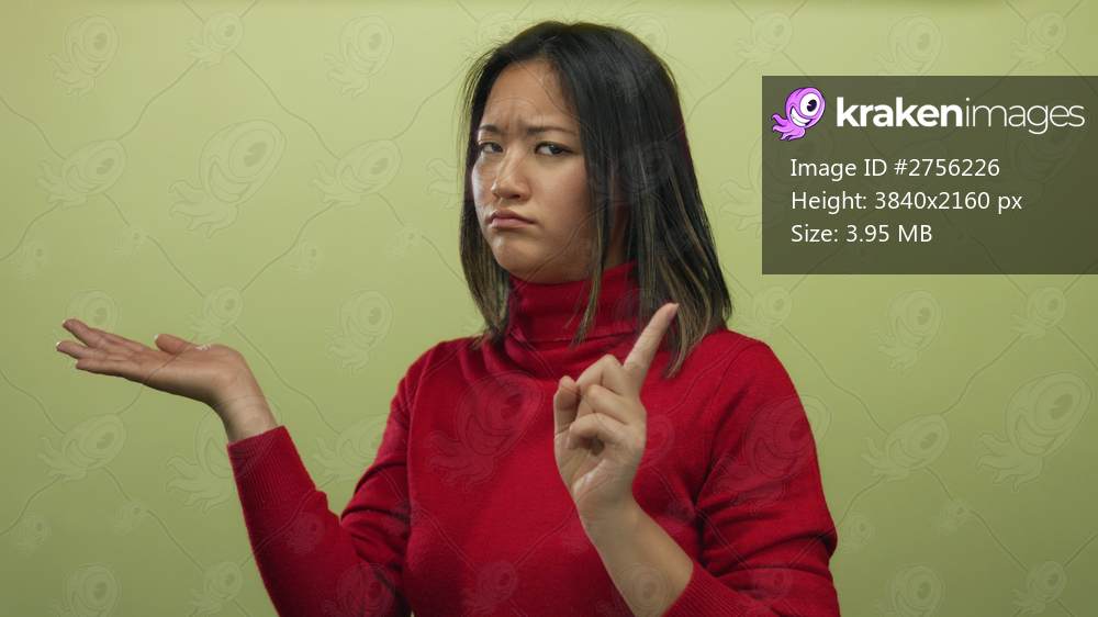 Young woman gesturing no with finger while extending palm against isolated yellow background